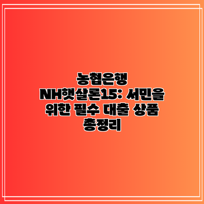 농협은행 NH햇살론15: 서민을 위한 필수 대출 상품 총정리