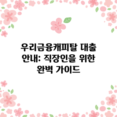 우리금융캐피탈 대출 안내: 직장인을 위한 완벽 가이드