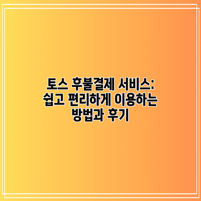 토스 후불결제 서비스: 쉽고 편리하게 이용하는 방법과 후기