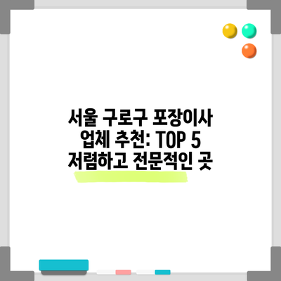 서울 구로구 포장이사 업체 추천: TOP 5 저렴하고 전문적인 곳