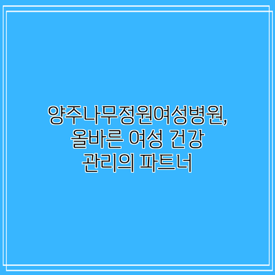 양주나무정원여성병원, 올바른 여성 건강 관리의 파트너