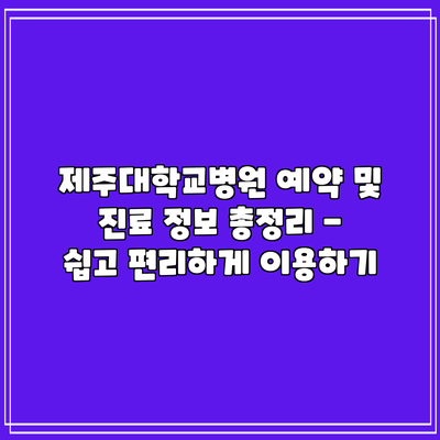 제주대학교병원 예약 및 진료 정보 총정리 – 쉽고 편리하게 이용하기