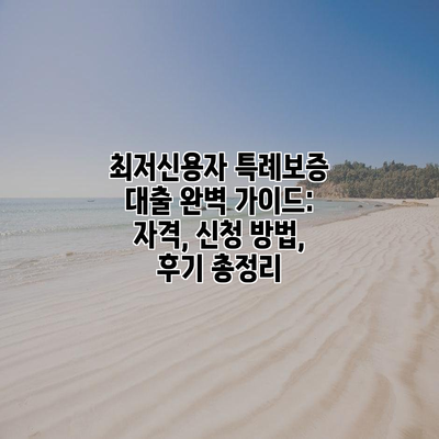 최저신용자 특례보증 대출 완벽 가이드: 자격, 신청 방법, 후기 총정리