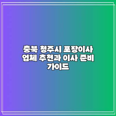 충북 청주시 포장이사 업체 추천과 이사 준비 가이드
