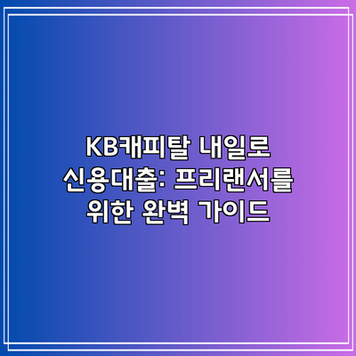 KB캐피탈 내일로 신용대출: 프리랜서를 위한 완벽 가이드