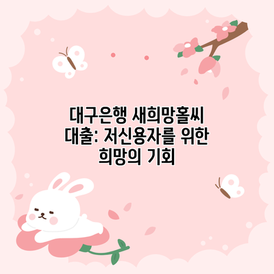 대구은행 새희망홀씨 대출: 저신용자를 위한 희망의 기회