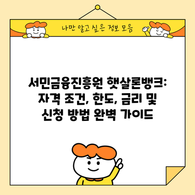 서민금융진흥원 햇살론뱅크: 자격 조건, 한도, 금리 및 신청 방법 완벽 가이드